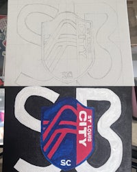 They were from the U.K, shooting for St. Louis City SC, and wanted to shoot content + follow-up with a downtown photo shoot of Wyatt’s skating. I was floored - in the best way possible. When we got home, I grabbed my sketchbook and IPad to google logos of SoccerBible and City SC.